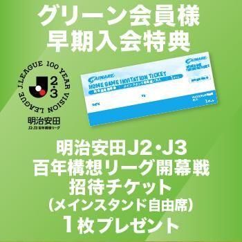 ※グリーン会員の付帯チケットは明治安田J2・J3百年構想リーグ、2026/27シーズンどちらでもご使用いただけます。