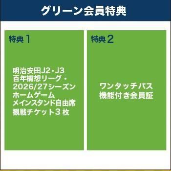 ※グリーン会員にご入会された方につきましては明治安田J2・J3百年構想リーグ+2026/27シーズン期間中でのグリーン会員への再入会はできません。